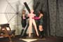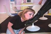 | Muffin is terrible at remember her friends birthdays, so Dani, Mistress Chloe and Diana team up to teach her a lesson she won't forget. Wearing pantyhose and knee high boots, the girls show Muffin a cake on the floor. They put her face right on it, and using their high heel boots, they press her face right into it. They get the cake all over their boots and make Muffin lick it off. To humiliate her more, they spit in the cake, and start smearing it all over her. In the next segment, Mary Jane is scolding CeCe. She punishes her by pushing on her nose. She pokes at it and pushes it upward with her fingers. CeCe is getting very uncomfortable, but Mary Jane doesn't quit. She pokes and prods at her cute nose until it is sore. In the last segment, Diana and Mistress Chloe are searching for their favorite brown leather gloves. They soon discover that Pam, the blow up doll has them on. They decide to teach Pam a lesson she will never forget. They punch her with their leather gloved hands and reclaim their pair of gloves. They bring her to the dungeon for more torture. She is kicked by their patent leather boots, strangled, spanked and violated in every way. They bring her to the bathroom where they dunk her violently in the toilet, flushing her in the bowl. They stomp and rip at her until she is completely deflated. 40 min. |
